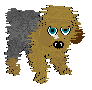 - Coat: Sheepdog fuzzy. Gold in front and grey in back. One brown ear and white on the tail tip and top of noze. Half points for white in place of gold.