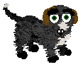 - Coat: Fuzzy and black with black toes and eyebrows, brown ears, and white on the chest, top of muzzle, and tail tip (full points) / No white patch on chest. One black ear (half points)
